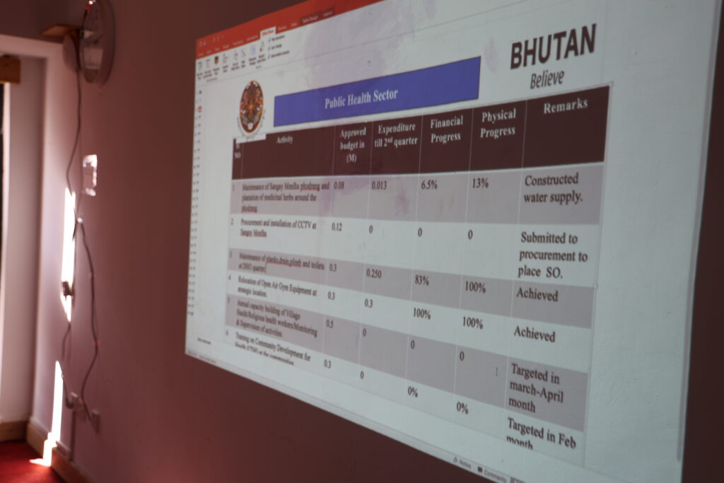 The proceedings began with a comprehensive presentation by the Planning Officer, who provided a detailed overview of the overall budgetary health and financial performance of the Dzongkhag. This presentation was not limited to fiscal figures but also meticulously detailed the physical progress of various sectoral activities. By comparing financial disbursements against actual ground-level achievements, the administration was able to identify high-performing sectors and those requiring additional support or intervention.